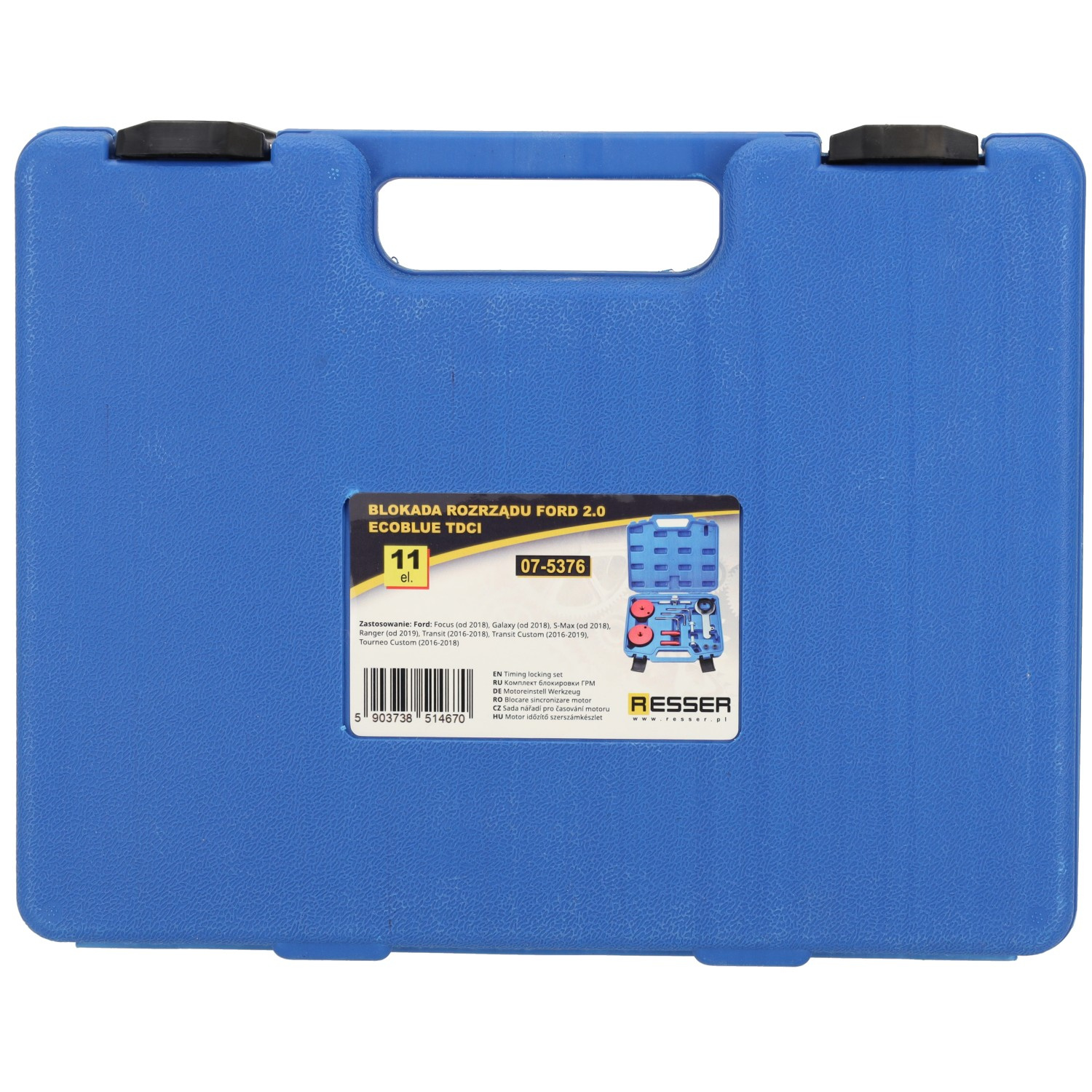 Blokada rozrządu Ford 2.0 EcoBlue TDCi to specjalistyczny zestaw narzędzi serwisowych przeznaczony do ustawiania i blokowania wału korbowego oraz wałków rozrządu w silnikach Ford z systemem „paska w oleju”. Zestaw umożliwia precyzyjną i bezpieczną wymianę paska rozrządu, zapewniając pełną kompatybilność z jednostkami 2.0 EcoBlue TDCi.
