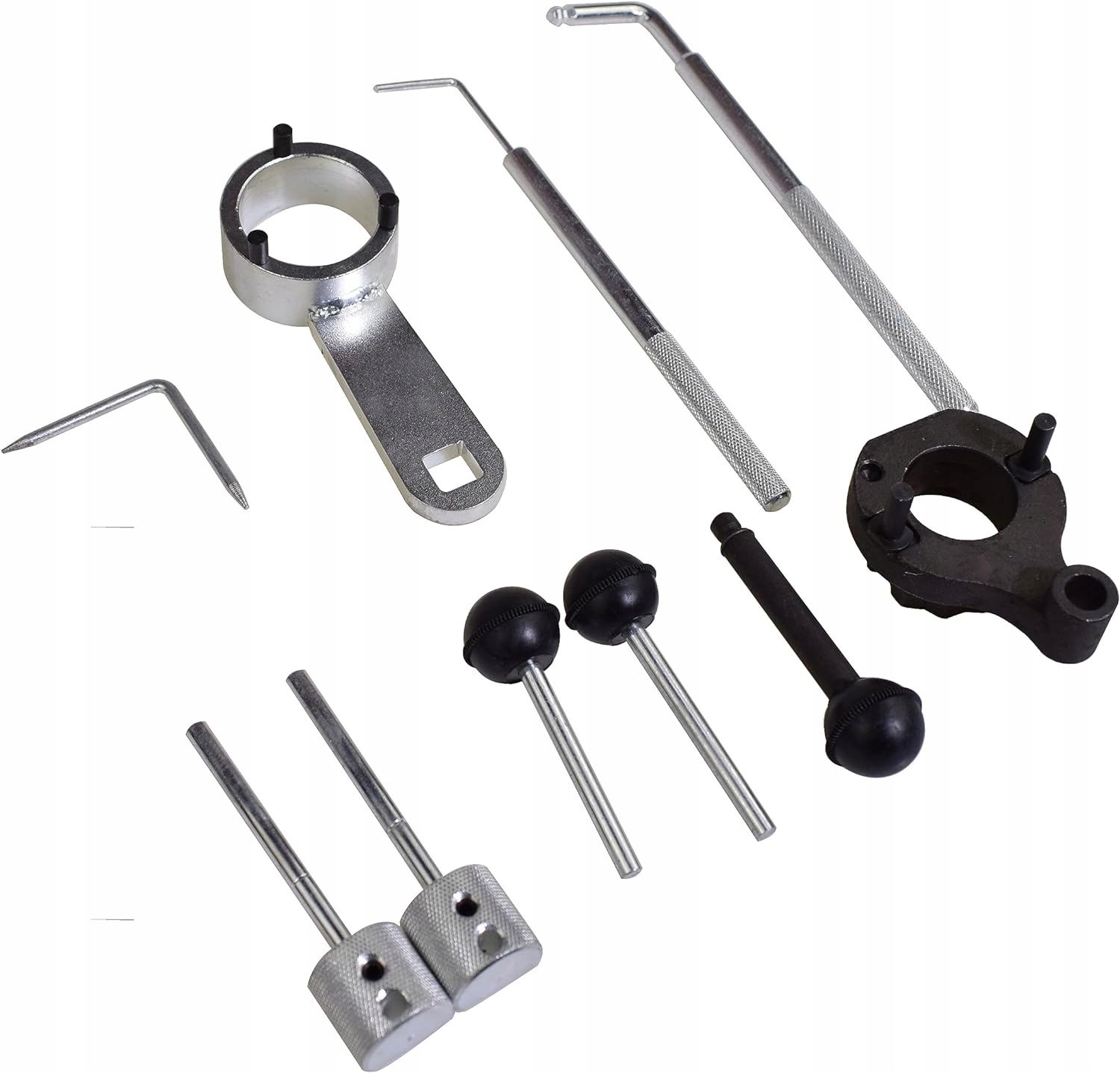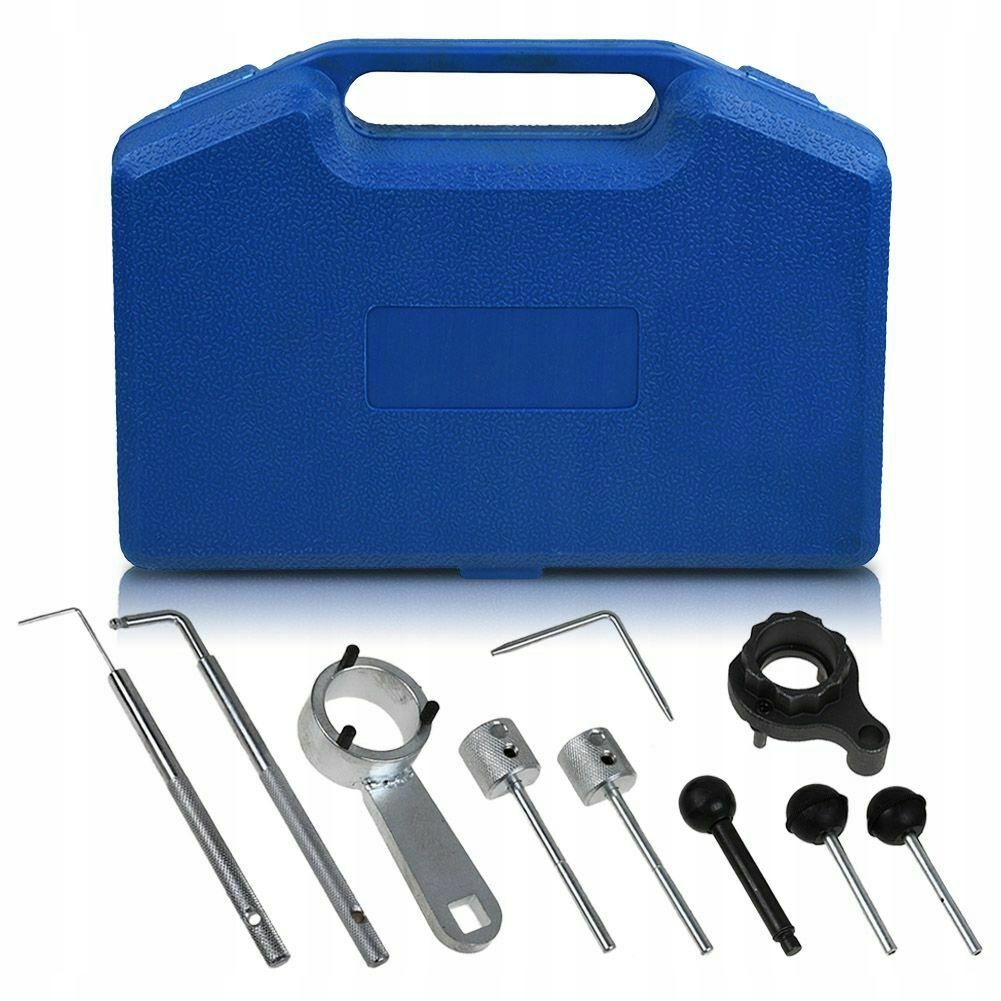Zestaw przystosowany do blokowania wału korbowego, koła pasowego wałka rozrządu i pompy paliwa w odpowiednim położeniu przystosowanym do demontażu i wymiany paska lub wałka rozrządu.