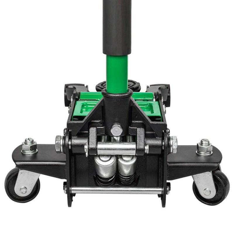 Podjazdowy podnośnik niskoprofilowy wykonany z grubej blachy stalowej, która zapewnia odpowiednią sztywność i wytrzymałość konstrukcji, posiada zawór spustowy zintegrowany z zaworem bezpieczeństwa. Podnośnik hydrauliczny typu żaba został wyposażony w masywne, metalowe kółka przednie oraz skrętne i łożyskowane kółka tylne, które zapewniają stabilną pracę i wysoką mobilność. Podnośnik warsztatowy posiada niskoprofilowaną konstrukcję, dzięki czemu znajdzie zastosowanie w serwisach samochodowych zajmujących się naprawą samochodów z obniżonym zawieszeniem, samochodów sportowych oraz tuningowych.