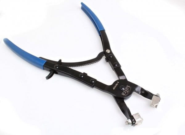 Szczypce przystosowane do specjalistycznych klipsów znajdujących się na wężu sprężarki VAG.