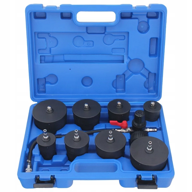 Profesjonalny zestaw do testowania szczelności układu dolotowego z turbosprężarką to niezastąpione narzędzie w każdym warsztacie zajmującym się diagnostyką silników doładowanych. Umożliwia szybkie wykrycie nieszczelności w przewodach ciśnieniowych, intercoolerze, turbosprężarce oraz pozostałych komponentach układu doładowania, bez konieczności demontażu poszczególnych elementów. Zasilany z układu sprężonego powietrza, tester działa przy wyłączonym silniku, co gwarantuje bezpieczne i wygodne użytkowanie.