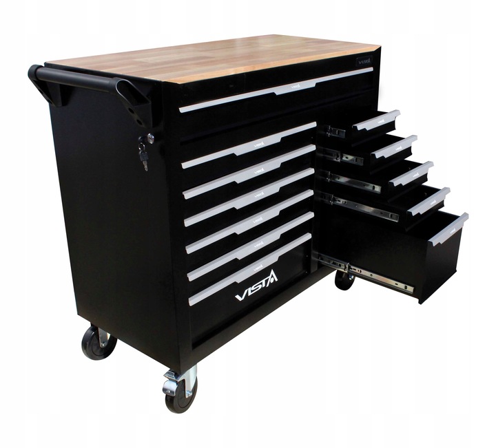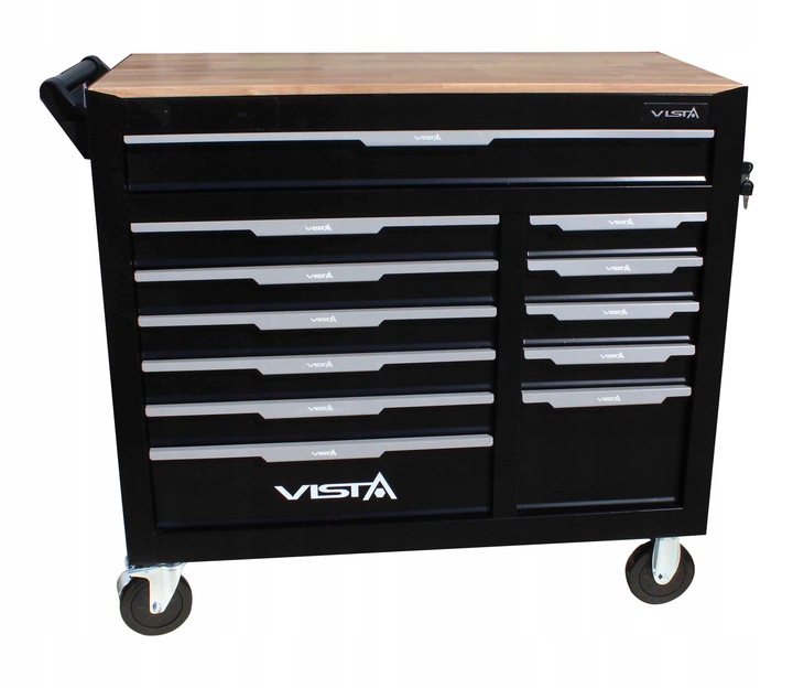 Wózek narzędziowy 12 szuflad z blatem drewnianym.
