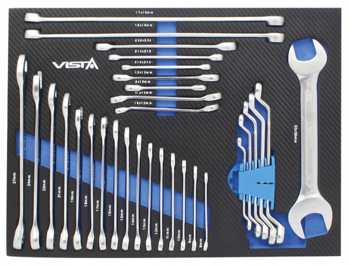 - Klucze płasko oczkowe: 8, 9, 10, 11, 12, 13, 14, 15, 16, 17, 18, 19, 21, 22, 24, 27 mm
